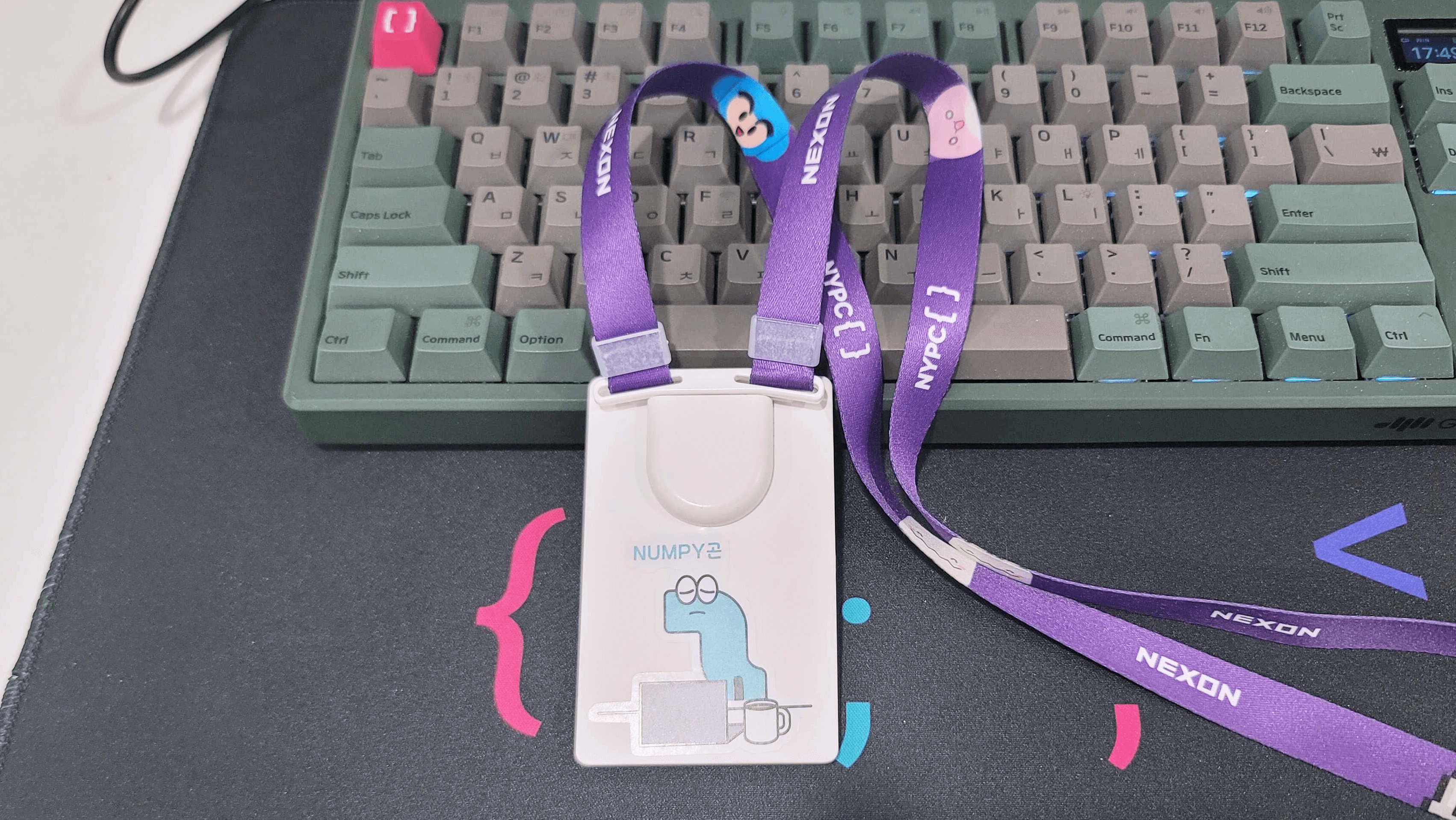 하지만 꼭 노트북에만 붙여야 된다는 법은 없기 마련입니다. 저는 사원증 뒷면에다 붙여버렸습니다. 업무상 numpy를 쓰지는 않지만, 이걸 본 동료가 피곤해 보이는 저를 보면 커피를 사줄지도요…