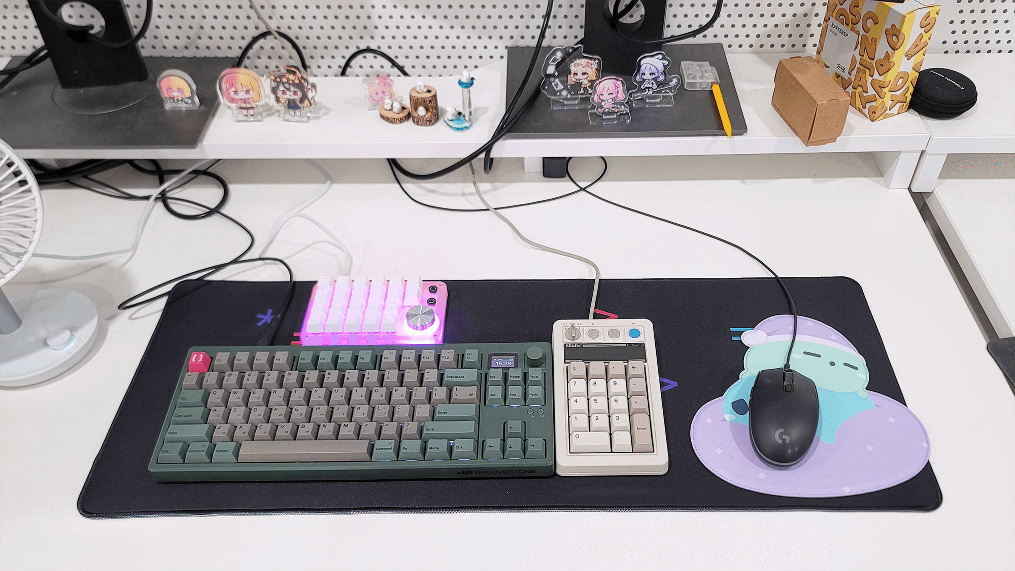 그리고 이 모든 사진들을 찍은 배경이 되어 준 장패드입니다. 제 책상에 뭐가 많아서 아까는 잘 보이지 않았지만, 일반적인 셋업에서는 이렇게 되겠습니다.